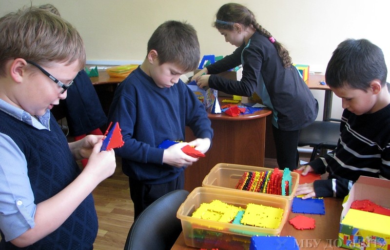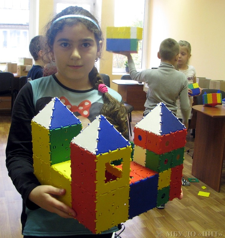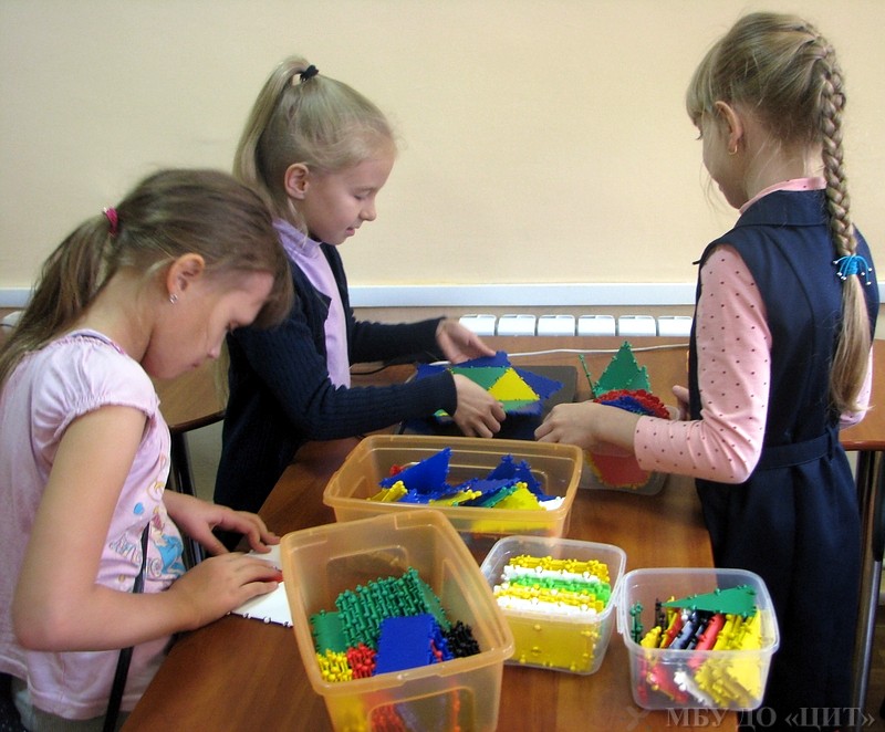Воспитанники группы «Основы конструирования» работают над творческими проектами из конструктора ТИКО.
