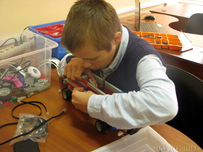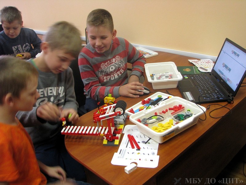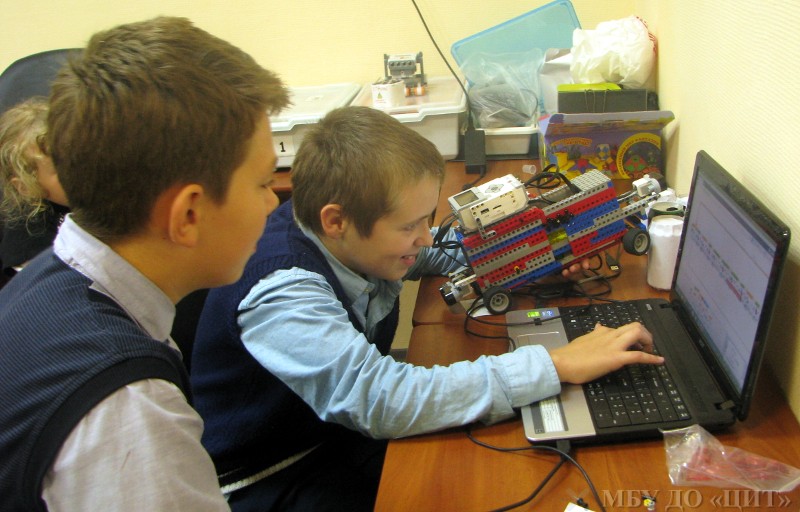Старшие ребята из группы «Робототехника в Trik-Studio» конструируют роботов для соревнования «Многоборье роботов» и подготавливают материалы для защиты творческих проектов.