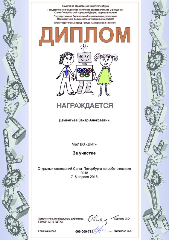 7 и 8 апреля 2018 года в Санкт-Петербурге проходили «Открытые соревнования по робототехнике». Более 500 участников из Санкт-Петербурга, Москвы, Великого Новгорода и Ленинградской области приняли участие в этих соревнованиях. Воспитанники клуба робототехники «Леонардо» принимали участие в двух категориях: «Кубок РТК Искатель» и «Лабиринт для начинающих».